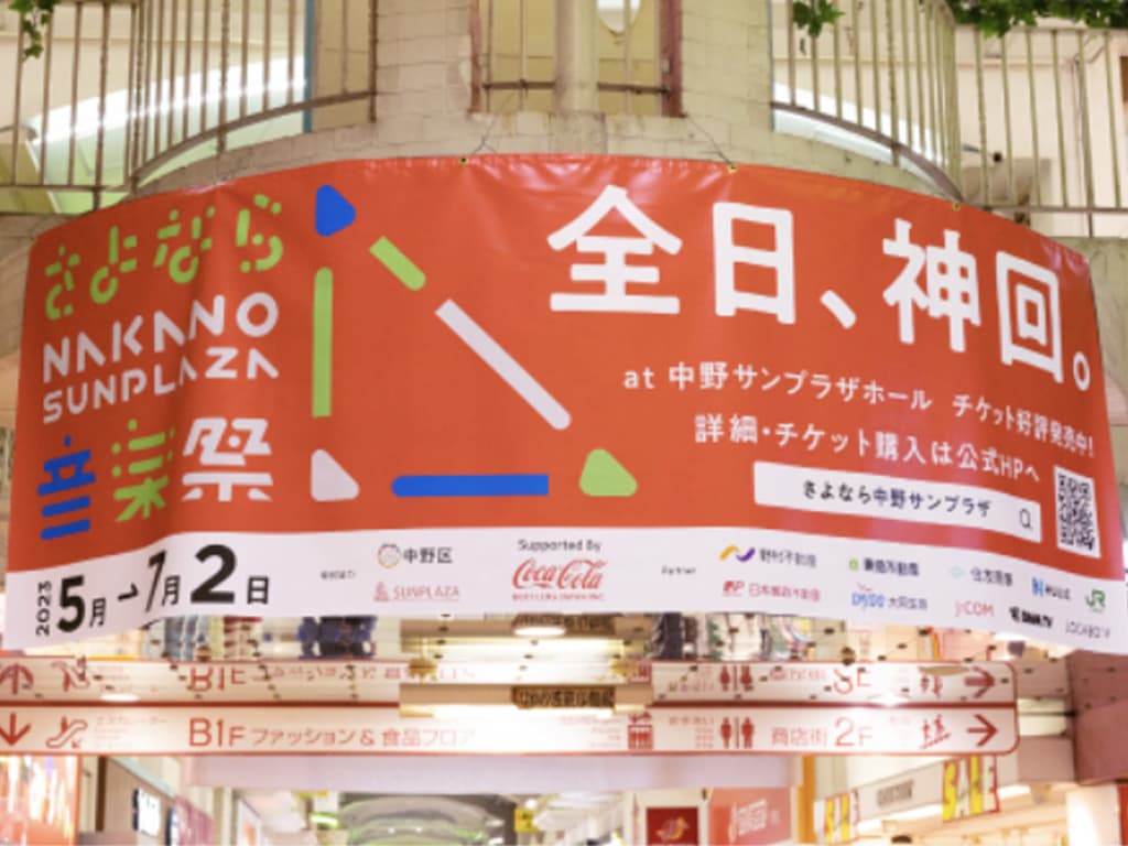 中野区の街中に掲げられた音楽祭の告知。こちらは旧中野区役所
